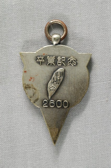 1.本件為臺灣同鄉會大學畢業紀念章,金屬製造。正面有「大學」字樣,背面有「卒業紀念」、臺灣島圖的上面有「同鄉会」、「2600」字樣,2600可能是指皇紀2600年(昭和15年;1940)。臺灣同鄉會為日治時期在日本的臺灣人組織的團體。 2.紀念章的製作,是為了表示對某一事件的產生之思念不忘。