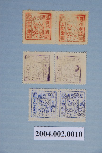 2004.002.0010.0001 臺灣民主國郵票第三版伍拾錢雙連