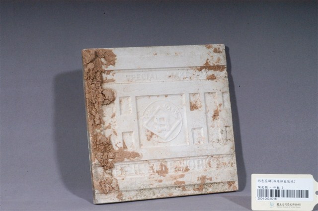 馬約利卡磁磚(Majolica Tile),臺灣稱為彩磁,是一種彩繪錫釉磁磚,使用乾黏土,以機器壓胚,人工上釉彩後燒製而成,上彩的方式有手繪、浮雕、轉印、Tube Lining等技法,本件為Tube Lining技法。臺灣引入的馬約利卡磁磚尺寸大多為6吋x6吋,亦有6吋x3吋、3吋x3吋等,本件為6x6吋。
