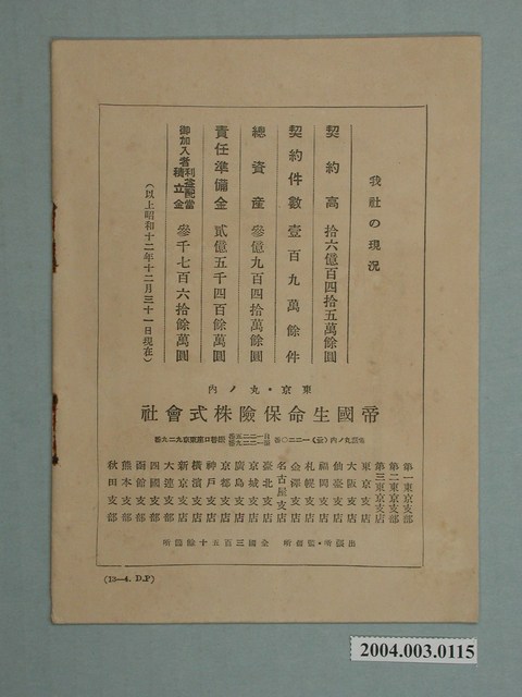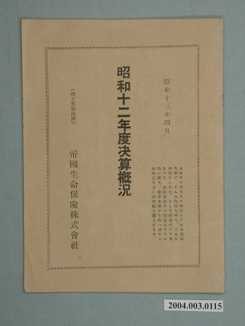 2004.003.0115 帝國生命保險株式會社昭和12年度決算概況