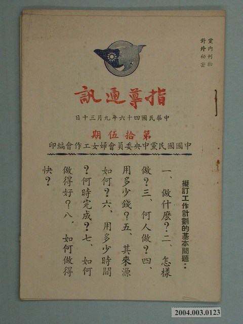 2004.003.0123 中國國民黨中央委員會婦女工作會發行《指導通訊》第15期