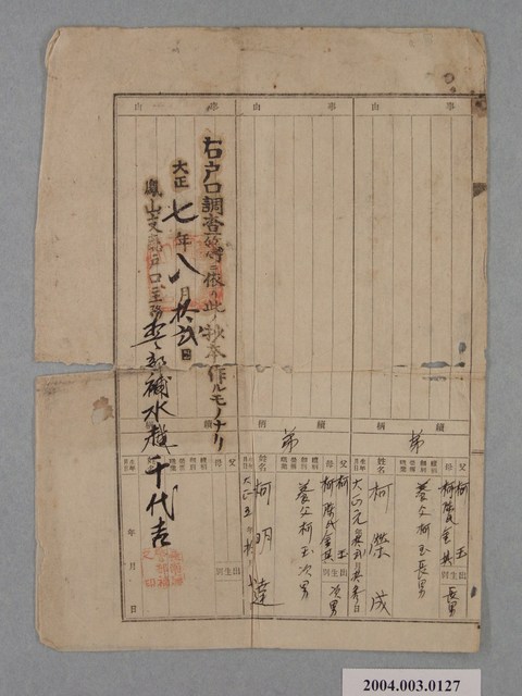 2004.003.0127 大正7年臺南廳大竹里鳳山街戶口名簿