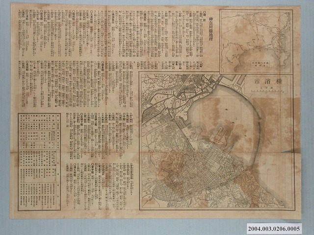 〈神奈川縣全圖〉為《最新詳密金刺分縣圖》套圖之一,比例尺二十萬分一,著作者木崎盛政,發行者金刺源次,發行所金刺製圖部,印刷者田村茂太郎,1918年5月15日訂正版。