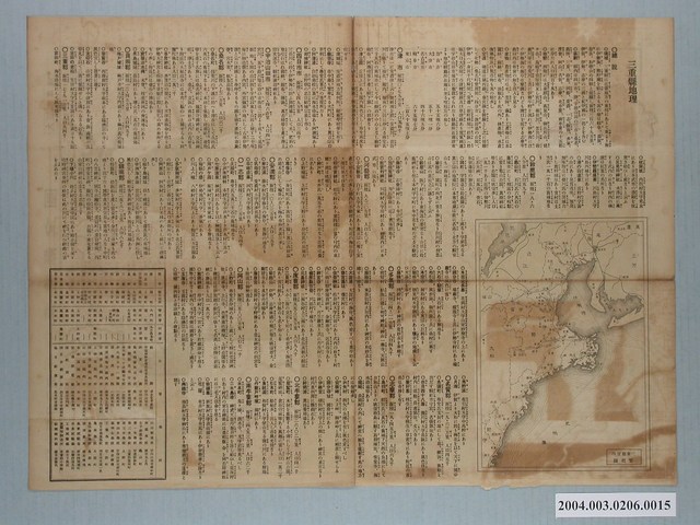 〈三重縣全圖〉為《最新詳密金刺分縣圖》套圖之一,比例尺二十萬分一,著作者木崎盛政,發行者金刺源次,發行所金刺製圖部,印刷者田村茂太郎,1919年5月3日訂正版。