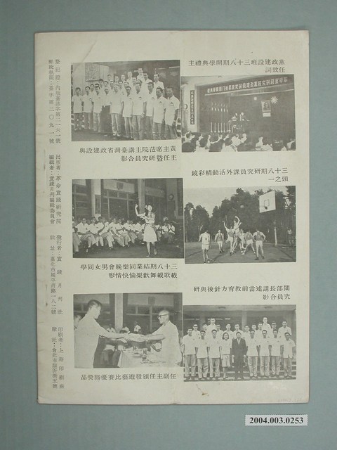 此為一紙質雜誌。此書為1967年(民國56年)8月20日,由實踐月刊編輯委員會編輯、實踐革命研究院出版的《實踐》第530期。 此物件提到的革命實踐研究院(以下簡稱為革實院),為國民黨政府來臺初期由中國國民黨總裁蔣中正於1949年10月16日所建立的國民黨黨政軍人才訓練所,研究院的地點設於草山(後稱陽明山)。革實院設立主因是國民黨敗退至臺灣,蔣中正認為必須從頭改革黨政軍,為日後「反攻大陸」奠定基礎,是故創立革實院以訓練人才。最初蔣中正曾將革實院命名為「革命雪恥學院」,後才改為「革命實踐研究院」之名(黃淑芬。2006。32-36)。 革實院於1953年於臺北木柵成立分院,1959年本分院合併於木柵,而原址改為國防研究院使用,1975年遷回陽明山,2000年因國民黨下野後的黨改造案,因此改名為國家發展研究院(黃淑芬。2006。37-42),但於2017年恢復革命實踐研究院之舊稱。