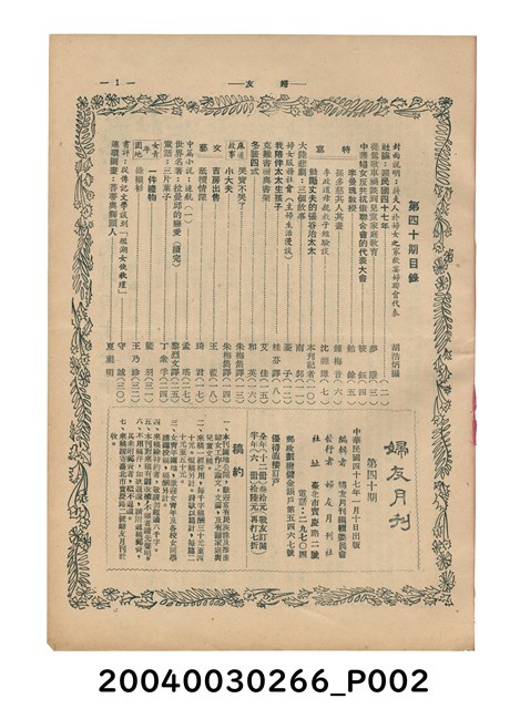 2004.003.0266 婦友月刊社出版《婦友》第40期