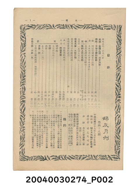 婦友第48期,台灣文學期刊目錄資料庫,國立台灣文學館,2019/09/21。