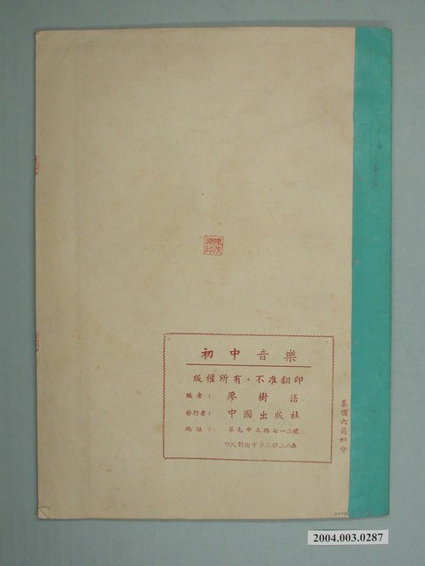 2004.003.0287 廖樹浯編著《初中音樂》第三冊