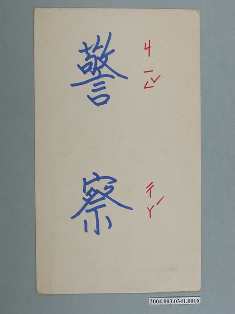 2004.003.0341.0016 嘉義市宣信國民小學社會課教具字卡之警察