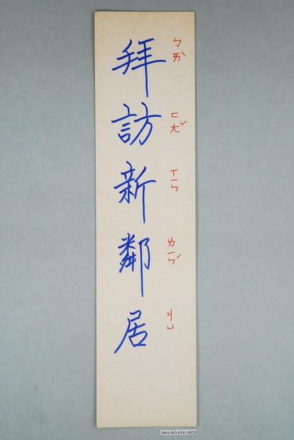 2004.003.0341.0020 嘉義市宣信國民小學社會課教具字卡之拜訪新鄰居