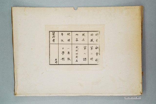 2004.003.0341.0022 國民小學社會課第二冊第八課教具封套