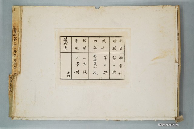 2004.003.0344.0022 嘉義市宣信國民小學社會課教具第一冊第四課教具封套