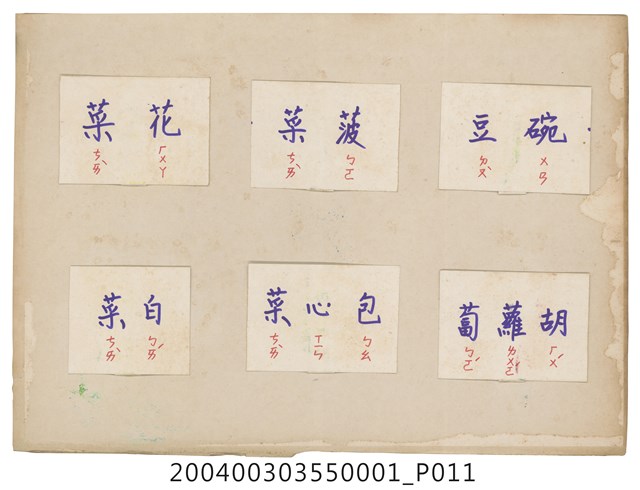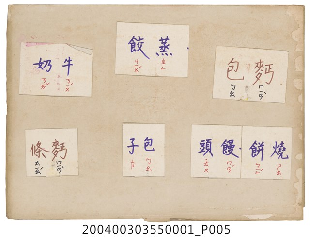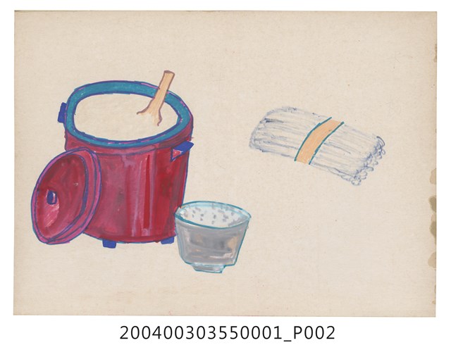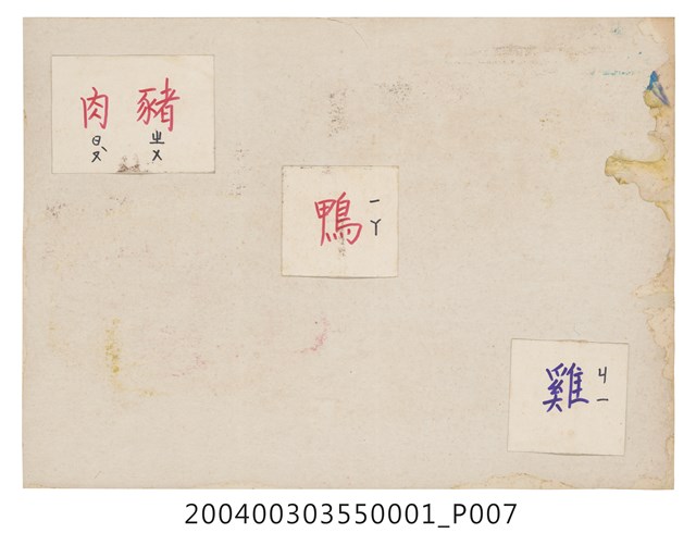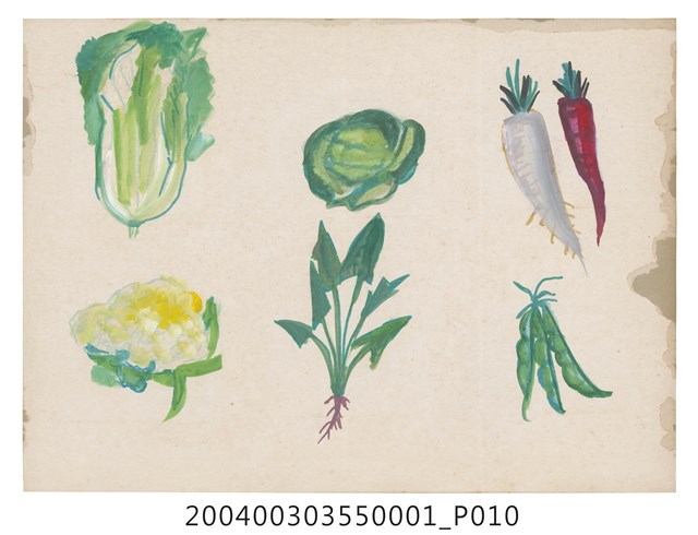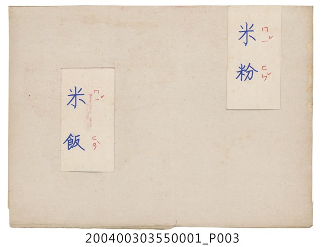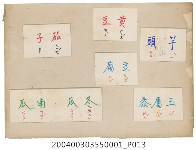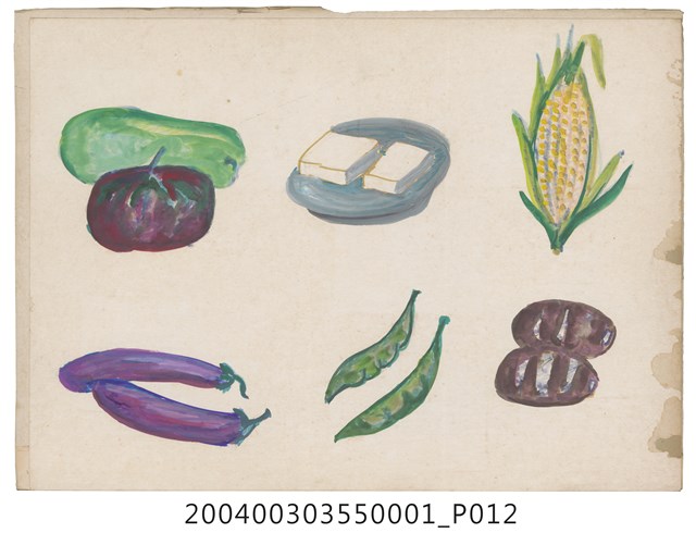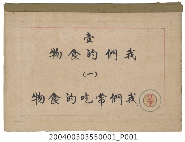 本件為嘉義市宣信國民小學社會課第四冊第一課教具,供二年級下學期用,封面寫有「壹 我們的食物(一) 我們常吃的食物」字樣。此件教具對應於國立編譯館依據民國64年(1975)11月公布的「國民小學社會課程標準」,統一編輯、發行之國小社會課本,課程單元為「我們的食物」,課名則為「我們常吃的食物」,包括介紹常吃的食物、食物的來源、良好的飲食習慣等內容。