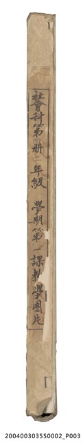 本件為嘉義市宣信國民小學社會課第四冊第1課教具封套,供二年級下學期用。封套上印有:「社會科第四冊」、「第一課我們常吃的食物」、「二年級下學期」字樣。此件教具對應於國立編譯館依據民國64年(1975)11月公布的「國民小學社會課程標準」,統一編輯、發行之國小社會課本,課程單元為「我們的食物」,課名則為「我們常吃的食物」,包括介紹常吃的食物、食物的來源、良好的飲食習慣等內容。