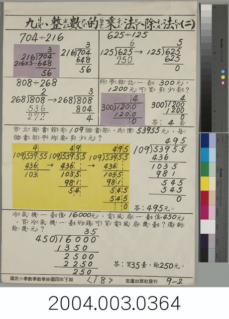 2004.003.0364 宏達出版社發行《國民小學數學課教學掛圖》