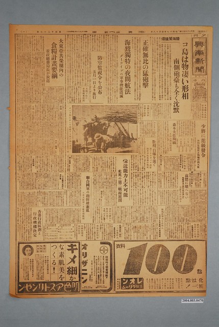 2004.003.0470 興南新聞社出版《興南新聞》夕刊第4037號1942年(昭和17年)4月18日第1、2版