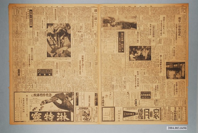 此物件為1942年5月3日出版的《興南新聞》第4052號,物件篇幅為單張,共計2版(第1、4版)物件內容要目計有:〈マンレダレ-を攻略 英、蔣聯合軍を隨所に擊滅 軍事據點完全に崩壞〉、〈アワングを占領 コタバト南方の要地〉、〈獨、伊兩巨頭が會談 確固たる決意を新に〉、〈新人奮戰の跡 第一日開票の結果〉、〈內外地の指定產業 綜合的體制に整備〉、〈局營バス南迴線 近く道路補修に着手〉、〈日滿支に於ける 食糧の自給對策〉等。 興南新聞社,前身為臺灣新民報社,為日治時期臺灣人創刊的重要報紙之一。在前身《臺灣民報》時期,便自詡為「臺灣人唯一的言論機關」,在當時的政治運動脈絡裡有重要地位。後在1930年,《臺灣民報》更名為《臺灣新民報》,並於1932年改為日刊發售。1941年,在日本帝國發動南向政策的時局下,《臺灣新民報》改名為《興南新聞》,同時批判政府的言論趨緩。之後,《興南新聞》與其他5份報刊在1944年被臺灣總督府整併為《臺灣新報》。 日治時期的報紙刊行十分困難。日本政府於1883年 發表「新聞紙條例」,對國內報章出版以「許可制」、「保證金」加以規範,「新聞紙條例」大幅限制報章出版,使得64家報刊被迫停辦,是以被日本史家稱為「新聞撲滅法」。而在日治時期臺灣,在殖民地統治專法《六三法》中此條例被沿用,限制臺灣創報。無法負荷的保證金、許可制的箝制、禁刊事項的不清楚、警察的干涉等種種,都使臺人辦報十分困難。到了1937年,在戰爭時期新聞管制之下辦報更加困難(王天濱,2002。78-86)。