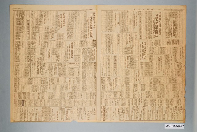 此為一紙質報紙,以黑色字體印刷,本物件為1945年(民國34年)12月11日發行之《臺灣新生報》第48號,此物件為單張雙面,共四版,內容計有〈臺灣省行政長官公署令:署法四一四號〉(行政長官陳儀)、〈臺灣省地方行政幹部訓練團招考民政系第一期學員通告〉、〈臺日銀卷特種存款支取抵押辦法公布〉、〈馬歇爾元帥抵重慶後可協力促使中國團結 杜魯門總統向報界宣稱〉、〈公署昨舉行國父紀念週,陳長官再勗勿擺官架子〉、〈經濟部報告接收處理要況:敵偽產業處理辦法,行院積極督促認真進行〉、〈東北行營及所屬人員 廿日前一律空運北平 錦州室內外電話已完全修復〉、〈救總總署儲運局,各局局長已發表〉、〈趙處長昨赴滬 接洽購置肥料事宜〉、〈洪蘭友談抵滬任務,謂將處理滬失業工人救濟事宜〉、〈魯整編游擊部隊,原有挺進隊等番號一律撤銷〉、〈氣象局統一時政,每天發放午音以便核對〉、〈樟腦工業已復工,前月生產量已超過六十噸〉、〈津漢奸分三處寄押,隱匿漢奸財產者與漢奸同罪〉、〈西北學生專心向學,全體教師刻苦領導〉、〈英外務部正式宣佈 三外長即在蘇京開會 傳將討論管制日本及原子彈等問題〉、〈聯合國情報機構籌備會正討論中,威廉士任情報顧問會主席〉、〈印度政局呈新發展,魏菲爾甘地將會談 尼赫魯將赴緬甸馬來調查〉、〈日軍偷襲珍珠港時,美能警惕損失必減――馬歇爾調查委員會宣稱〉、〈日本資源分配問題 魏德邁將軍等拒作解釋〉、〈美前海軍部長報告:遠距離操縱飛彈研究成功,強大海軍實力使日本慘敗〉、〈關稅司正式辦公,進出口貨須先報關〉、〈爪哇呈現飢饉〉、〈爪哇英軍新任務:恢復並維持全境秩序〉、〈被判絞刑犯山下奉文向美法院作最後哀求〉、〈四國管制德國問題〉、〈日軍又在新莊肇禍,駕駛汽車撞傷國軍副官〉、〈開發臺灣經濟的一點意見〉(謝爽秋)、〈社論:米供出に對する農民の要望〉、〈第七次國父紀念週:官僚風を吹がすな,陳長官全省公務員に諭す〉、〈酋長は選舉制に,胡處長に高山同胞嘆願〉、〈高雄の貿易活潑化〉、〈軍風紀巡察團一行,近ぐ來臺視察せん〉、〈危い當藝で怪我,汽車の乘客はゼヒ御注意〉、〈建築取締りを實施(臺南)〉、〈鰻上りの高雄米價〉、〈冬將軍で病死十萬か 生活費は月に約一千圓――國軍進駐前滿州日人の動靜〉、〈本國の聽取も可能 民雄百キロ電臺修復す〉、〈都市の美觀を損ふ 廣告ビラなど綺麗に取りませそ〉、〈國文解讀紙上講座:公文書の卷〉、〈各州廳接管狀況を視ろ〉、〈治安と物價の解決 委員會に州民切實な願望:臺南州の卷〉、〈國文解讀紙上講座:公文書の卷〉等。 《臺灣新生報》創刊於1945年10月,是戰後初期由臺灣省行政長官公署宣傳委員會所經營的官方報刊,其前身為1944年,臺灣總督府整併島內六間報社所發行的《臺灣新報》。《臺灣新生報》最初由李萬居主導,雖屬官營報紙,但仍忠實反應民意,在二二八事件前夕,官民衝突漸深之際,新生報屢次發表告誡官方約束權力之言論。二二八事件之後,李萬居職權遭架空,辦報人員亦多被肅清,《臺灣新生報》成為更加偏向政府的報紙。 中華民國政府於1945年接收臺灣之始,即派出「中央宣傳部」整頓臺灣報業,撤廢日治時期管控報紙的許可制度,改為登記申請制,管制的解除使得戰後初期的辦報風氣大盛。後由於民間報刊對於接收後的行政長官公署多有批判,於是在二二八事件之後,政府開始嚴格控管報紙,在戒嚴開始後更以資源節約、端正文化等理由施行「報禁」。(王天濱,2002。154-170)