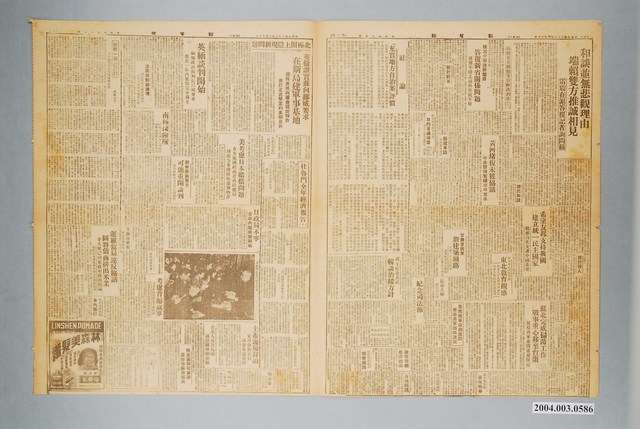 此為一紙質報紙,以黑色字體印刷,本物件為1947年(民國36年)1月13日發行之《臺灣新生報》第446號,此物件為單張雙面,共四版,內容計有〈和談並無悲觀理由,端賴雙方推誠相見,雷震在滬答覆記者詢問稱〉、〈馬帥在美繼續等待和談消息〉、〈張治中招待新聞界答覆新省關係問題,新疆不穩之說與事實不符〉、〈黃河堵復未獲協議,中共堅持暫緩堵口放水〉、〈社論:「充實地方自治案」評價〉、〈希望友邦支持我國建立統一民主國家,顧維鈞在美講中國希望〉、〈東北教育觀感:兒童大半失學問題嚴重,如能急起直追前途有望〉、〈甘肅至廣東將建築鐵路,全長一千八百餘里,遠東航線春末開始〉、〈蘇北完成掃蕩工作,戰事重心移至台棗,冀境共軍企圖進犯保定〉、〈魯南戰事益趨激烈,察南共軍四向流竄〉、〈紀念司法節,首都及各地均舉行儀式〉、〈綏主席董其武暢談治綏方針〉、〈英倫證實蘇向挪威要求在斯島建軍事基地,挪外長將向國會提出報告,美已正式堅定的表明反對〉、〈英緬談判開始,緬甸政治領袖提三項要求,應於一年內獲得完全獨立〉、〈杜魯門全年經濟報告(下)〉、〈法圖控制越邊境,胡志明表示願談判和平,中英美領事訪越盟官吏〉、〈美考慮日本賠償問題,各有關國磋商若再陷僵局將指令麥帥開始遷移物資〉、〈朝鮮美蘇雙方可能重開談判,霍奇與蘇軍司令曾交換意見〉、〈南極探險隊〉、〈日政局不寧,吉田內閣將總辭職〉、〈土希邊境封鎖,安理會將派員調查希邊事件〉、〈美黑人反對馬帥就任國務卿新職〉、〈與史達林晤會後,蒙帥離蘇飛返英〉、〈考慮普遍裁軍,須先解決管制原子能問題〉、〈暹羅當局違反協議圖將僑商排出米葉,李大使已向暹政府提出抗議〉、〈行政會議一致重視本省經濟建設計劃,增加國民收入,提高六種水準〉、〈推行食糧生產政策,縣市應設改良苗圃,當局訂定辦法勵行早播〉、〈統一公路行政 公路事項均移公路局辦理〉、〈人民的權利和義務 高等法院推事吳鴻祺廣播詞〉、〈重建臺南地震災區,縣向地行商得貸款,嘉青年團所募款即日分配〉、〈農林處為增進生產成立臺農設計委會〉、〈四鄉編入臺中市,市派員勘定界線〉等。 《臺灣新生報》創刊於1945年10月,是戰後初期由臺灣省行政長官公署宣傳委員會所經營的官方報刊,其前身為1944年,臺灣總督府整併島內六間報社所發行的《臺灣新報》。《臺灣新生報》最初由李萬居主導,雖屬官營報紙,但仍忠實反應民意,在二二八事件前夕,官民衝突漸深之際,新生報屢次發表告誡官方約束權力之言論。二二八事件之後,李萬居職權遭架空,辦報人員亦多被肅清,《臺灣新生報》成為更加偏向政府的報紙。 中華民國政府於1945年接收臺灣之始,即派出「中央宣傳部」整頓臺灣報業,撤廢日治時期管控報紙的許可制度,改為登記申請制,管制的解除使得戰後初期的辦報風氣大盛。後由於民間報刊對於接收後的行政長官公署多有批判,於是在二二八事件之後,政府開始嚴格控管報紙,在戒嚴開始後更以資源節約、端正文化等理由施行「報禁」。(王天濱,2002。154-170)