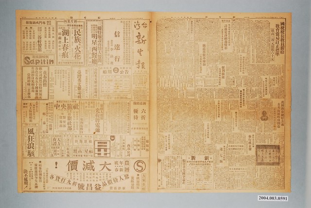 2004.003.0591 臺灣新生報社出版《臺灣新生報》1947年(民國36年)1月23日1至4版