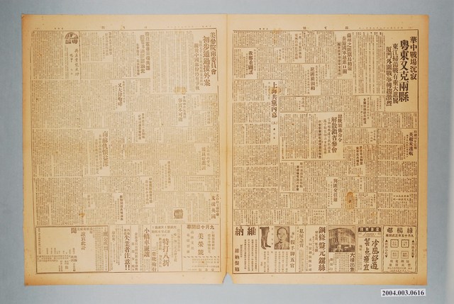 此為一紙質報紙,以黑色字體印刷,本物件為1949年(民國38年)9月11日發行之《臺灣新生報》第1405號,此物件為單張雙面,共四版,內容計有〈華中戰場沉寂,粵東又克兩縣,東江掃蕩戰有重大進展,廈門外圍戰事轉趨激烈〉、〈蘭州之匪竄烏鞘嶺,秦嶺國軍越進口關,隴東匪軍侵擾寧夏南部〉、〈一萬二千旅韓僑胞電陳白兩長官致敬〉、〈通貨膨脹失業激增,滬匪狼狽相,不得不提出新的口號「三個人的飯由五個人吃」〉、〈全國鼓鑄銀元概況〉、〈桂總司令宣稱英艦未護航〉、〈民主自由聯盟重申反共信念〉、〈總統頒布命令解散滇省參會,言論越軌違背戡亂國策應予解散依法重行選舉 非常委會聽取處理滇局報告〉、〈上海共黨內幕(五)〉(傅紅蓼)、〈順利通過加征糧額,蔣總統電謝川參會〉、〈外傳日飛行員來華,我鄭重闢謠〉、〈美參院兩委員會初步通過援外案,包括七千五百萬元援助遠東區域,關於中國部份仍有爭執〉、〈蘇以軍器裝備共匪並圖解決匪區油荒〉、〈籌組太平洋聯盟,羅慕洛展開活動〉、〈日與中共貿易說事實不可能〉、〈日本建立外交關係必須經遠委會核准 英倫外交人員發表主張〉、〈共產黨能成功嗎?〉、〈三國財政會議獲良好進展〉、〈美自由工聯呼籲支援英國〉、〈捷克仇視天主教,拒絕梵蒂崗入境簽證,捷教士反對宗教管制〉、〈印在國際議會呼籲廢除不平等條約〉、〈南蘇仇恨益深,布加寧說南國將自食其果並警告親蘇國家不得效尤〉、〈蘇聯開發奧境油田,說是戰前德在東奧財產,對奧和約中仍為蘇所有〉、〈蘇聯集團在安理會又大肆咆哮,對申請入盟主張者來者不拒,抨擊西方代表們從中阻擾〉、〈印在國際會議呼籲廢除不平等條約〉、〈新竹市南的輸血管,竹珊公路將開築〉、〈省立花蓮救濟院舉行記者招待會,院長報告該院業務〉、〈瑞芳德發醫院院長免費施診一千病人〉、〈高雄縣參會舉行行政區劃分座談,建議分設鳳山屏東兩縣〉、〈長山八島的一筆血債〉(本報記者 黃漢)等。 《臺灣新生報》創刊於1945年10月,是戰後初期由臺灣省行政長官公署宣傳委員會所經營的官方報刊,其前身為1944年,臺灣總督府整併島內六間報社所發行的《臺灣新報》。《臺灣新生報》最初由李萬居主導,雖屬官營報紙,但仍忠實反應民意,在二二八事件前夕,官民衝突漸深之際,新生報屢次發表告誡官方約束權力之言論。二二八事件之後,李萬居職權遭架空,辦報人員亦多被肅清,《臺灣新生報》成為更加偏向政府的報紙。 中華民國政府於1945年接收臺灣之始,即派出「中央宣傳部」整頓臺灣報業,撤廢日治時期管控報紙的許可制度,改為登記申請制,管制的解除使得戰後初期的辦報風氣大盛。後由於民間報刊對於接收後的行政長官公署多有批判,於是在二二八事件之後,政府開始嚴格控管報紙,在戒嚴開始後更以資源節約、端正文化等理由施行「報禁」。(王天濱,2002。154-170)