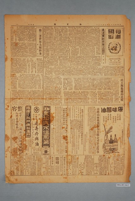 2004.003.0622 臺灣新生報社出版《臺灣新生報》1949年(民國38年)9月13日9、10版