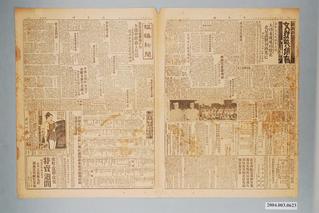 此為一紙質報紙,以黑色字體印刷,本物件為1949年(民國38年)9月13日發行之《臺灣新生報》第1407號,此物件為單張雙面,共四版,內容計有〈體卹全省公教人員,降低戶稅課征標準,以收入百分之六十為準,省參駐委決向政府建議〉、〈閩臺區監署三監委昨巡察省府秘書處,今天上午巡察民政廳〉、〈朱紹良敵前脫逃案,監委提糾舉,各項事實已調查清楚〉、〈傳民航中心遷臺尚未得證實〉、〈動物學史上一奇蹟,貓鼠和平共處〉、〈張知本昨拜會各機關首長,今視察法院及監獄〉、〈省府昨舉行紀念週,王成章報告警務,警察統一指揮力量加強,刑警設備亦已大加增添〉、〈臺北監獄參觀記〉(本報記者 林琨)、〈本市鴻茂貿易行被竊巨額金鈔〉、〈赤日炎炎足球賽火熾,大功未成成功敗北,北星諸將初露光芒,鐵路對正牌成功改今日舉行〉、〈強弩之末難穿魯縞,成功反攻無效〉、〈新竹縣府定期召開全縣中學校長會議〉、〈學訓班重視考核,訓導處已訂定嚴密辦法,結業前並將舉行測驗〉、〈校產空地引起糾紛,教員多人冤枉被裁〉、〈臺大昨已開學,廿一日起報到註冊,廿六日即正式上課〉、〈苗栗鎮民范木蘭慨捐年薪助學〉、〈臺灣永久是中國領土〉、〈日來美鈔價格波動,全係中間商人作祟,一般進出口商及單幫客亦難辭其咎,當局正加注意嚴密調查〉,〈金鈔趨下游,港條出價軋小五元,美鈔收市下挫一角〉、〈臺日貿易進展聲中,日本商界期望兩點〉、〈本年度鳳梨加工業已超過預定產量,日前已達九萬三千餘箱〉、〈臺幣對銀元券匯率,臺灣銀行昨經調整〉、〈外埠報高交易活絡,紗布昨市直線上升〉、〈中央造幣廠將開鑄,新台幣硬質輔幣〉、〈平衡臺穗匯兌頭寸,台銀掛牌收兌銀元,昨日銀元牌價為二元九四 臺銀公佈穗匯補充辦法〉、〈美元荒問題〉(林學先譯)、〈生命之弦 鄧肯逝世廿三年祭〉(姚朋)、〈雷達的作用〉(高人)、〈離奇遺囑〉(海天譯)、〈戀與愛(下)三餘襍記之廿八〉(胡搖)等。 《臺灣新生報》創刊於1945年10月,是戰後初期由臺灣省行政長官公署宣傳委員會所經營的官方報刊,其前身為1944年,臺灣總督府整併島內六間報社所發行的《臺灣新報》。《臺灣新生報》最初由李萬居主導,雖屬官營報紙,但仍忠實反應民意,在二二八事件前夕,官民衝突漸深之際,新生報屢次發表告誡官方約束權力之言論。二二八事件之後,李萬居職權遭架空,辦報人員亦多被肅清,《臺灣新生報》成為更加偏向政府的報紙。 中華民國政府於1945年接收臺灣之始,即派出「中央宣傳部」整頓臺灣報業,撤廢日治時期管控報紙的許可制度,改為登記申請制,管制的解除使得戰後初期的辦報風氣大盛。後由於民間報刊對於接收後的行政長官公署多有批判,於是在二二八事件之後,政府開始嚴格控管報紙,在戒嚴開始後更以資源節約、端正文化等理由施行「報禁」。(王天濱,2002。154-170)