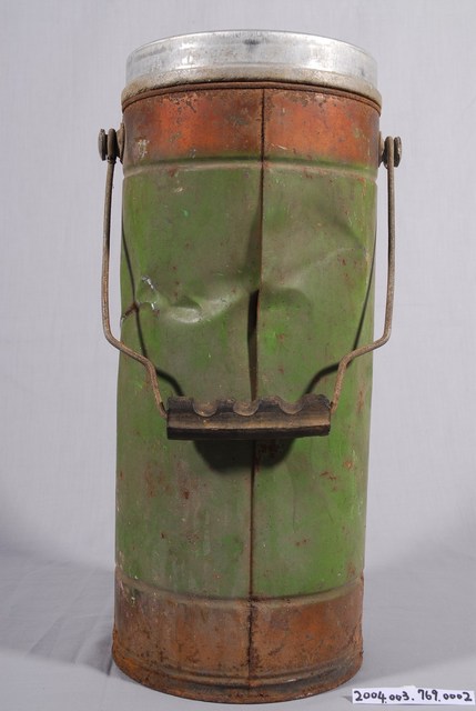 本件壺身為勝利牌金屬保溫壺部件之2,呈長18.6公分,寬17.7公分,高36.8公分之長形圓筒狀。頂端口部為鋁金屬材質,其餘以鐵皮包覆,表面帶有綠色漆料,上下端呈紅銅色。正面印有「VICTORY THERMOS」字樣呈橢圓形框,內印「V」字,左右疊加紅色「勝利」字樣。底緣處則以菱形框內帶「V」字,左右側為「勝利」字樣,為品牌名稱。壺身於接近口部左右兩側相對處帶有ㄇ字型提樑式手把,底面帶有圓形透孔。