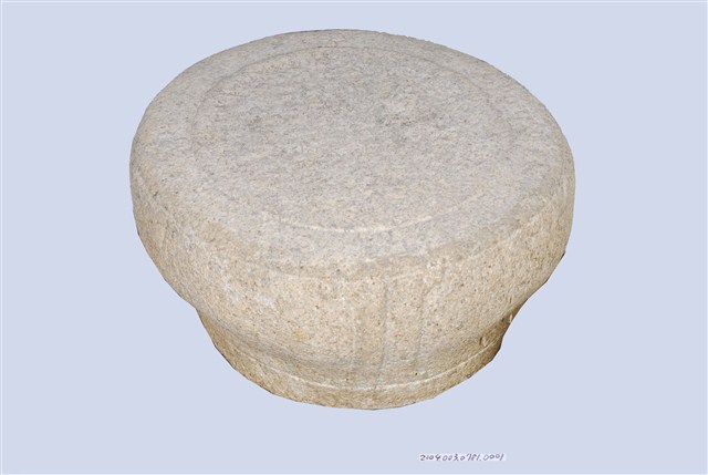 本文物為館藏號2004.003.0781柱珠組其中一件。柱珠,又稱柱礎、柱礩,用於傳統漢式廟宇、祠堂或民居。柱珠為石作,是柱子的基礎,原用以防止地面潮氣使木柱受潮腐朽,改用石柱後仍作柱珠。柱珠有圓鼓形、南瓜形、木瓜形、四角形、八角形、蓮花形等作法,並常施以細部浮雕為飾。本件文物為木瓜形,頂部圓圈線內為柱子的斷面大小,側面有陰刻線條,裝飾簡單,為清代盛行作法,但亦可能為後期所作,用於較次要的空間。