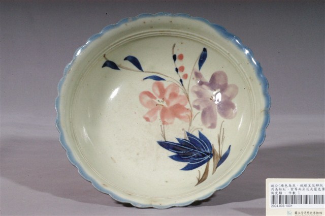 2004.003.1001 手繪青花粉紅彩花卉紋花口碗