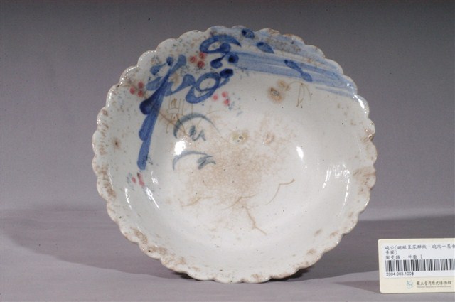 2004.003.1008 手繪青花粉紅風景圖花形碗