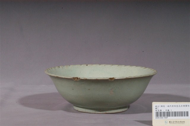 1.彩繪花卉紋瓷碗侈口、弧壁、帶圈足碗,大圈足,圈足露胎,胎色白中帶灰,胎質細緻。器面有諸多細碎的開片紋路,口緣處有多處破損。全器施罩一層透明綠釉,呈色清淡透亮。口緣以篦劃紋工具刻連續斜線,形成凹凸起伏的花邊飾帶。外壁素面無紋。碗心以粉紅、綠、褐彩描繪盛開的花卉與花苞。藉由清淡透明的粉紅釉相互交疊,巧妙呈現睡蓮花瓣細幼且輕巧的質地,此外,於其四周隨意地點綴綠釉及勾勒褐線作為植物的莖葉,整體繪畫風格兼具了寫實細膩與隨性寫意,充滿趣味。2.粉紅彩色料,其引進臺灣比釉下青花鈷料年代略晚,但可能日治時期已開始使