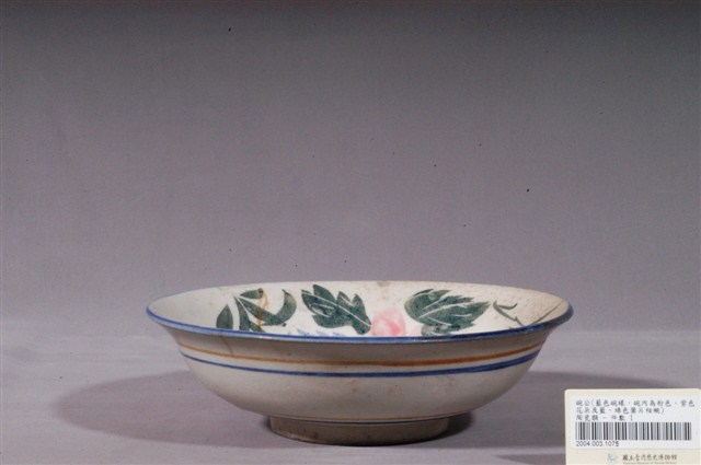 彩繪花卉紋碗高溫燒製,圓唇,敞口,弧壁,碗底較淺且寬,大圈足,圈足露胎,胎質細膩無雜質,略有窯沙沾黏。全器施白釉,呈色略帶暖色調,器表有諸多氣孔及些微裂痕,碗心及內壁有泛黃現象。口沿處施一圈鈷藍釉,外壁上緣及下緣處各繪兩組藍色及褐色組合的弦紋,呈色鮮豔。主要的花卉紋飾散繪於碗心一側。構圖主題為一朵盛開的粉紅花卉,並於四周延伸出小花及枝葉等,使觀者視線更加集中於花卉之上。紋飾以粉紅釉為主要表現,並採淡紫色釉為輔;葉片的釉色則以墨綠釉及藍釉呈現之。筆法細膩謹慎,且葉片的繪製技巧頗具巧思,於上釉後再快速刮出細線