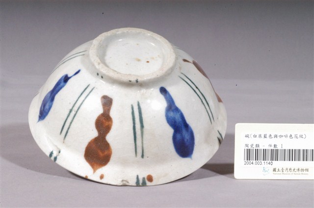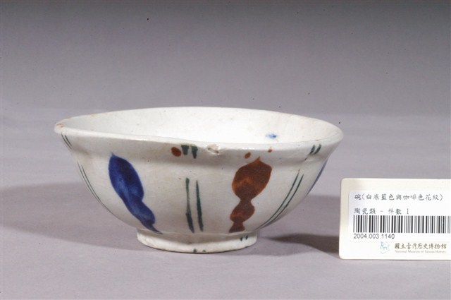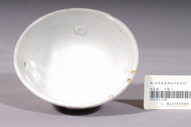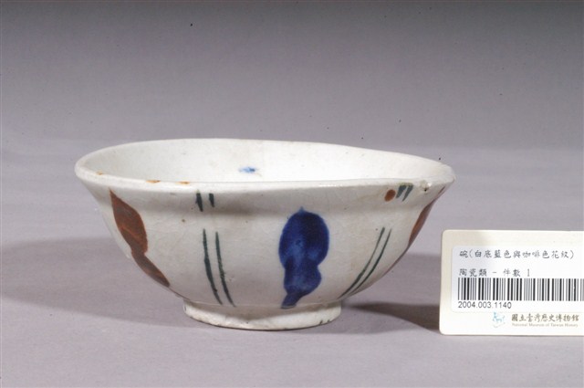2004.003.1140 白釉藍與咖啡色幾何彩繪紋瓷碗