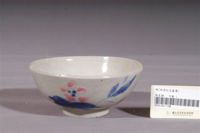 2004.003.1159 白釉紅花藍葉彩繪紋瓷碗