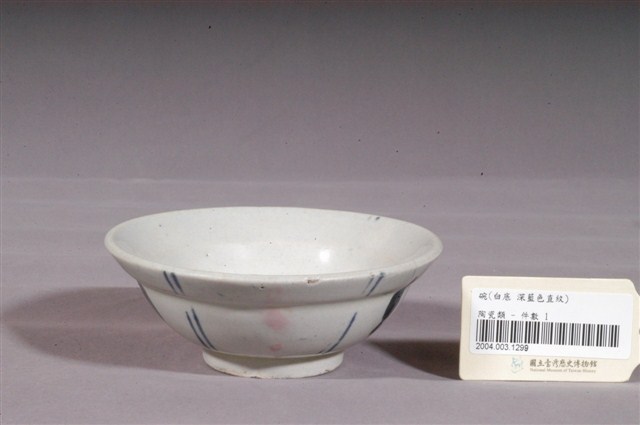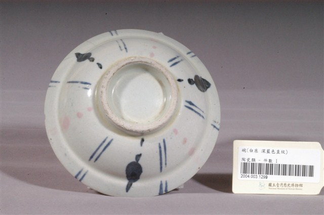 1.青花粉紅彩生意碗,撇口,折沿,碗外壁口緣下方作一內凹折痕,折痕以下呈圓弧形下收,底有圈足。以模具成形,施釉彩繪裝飾後高溫燒成。全器施白釉,圈足底露胎,胎色米白。碗內壁素面無紋,折沿有一道弧形細裂紋,凹線處有幾個青色小斑點,應為彩繪施作時不小心沾到鈷料所致,碗外壁用青花與粉紅彩裝飾,以外底心為中心,呈放射狀繪製青色雙線紋將碗身分成六等份,雙線中間交錯裝飾青花水滴線條紋與粉紅彩點狀紋飾。2.生意碗為小吃攤喜愛使用,業者稱為「生意碗」的小吃碗,常見於滷肉飯、肉圓、肉羹等小吃攤。它的形制相當特別,通常胚體厚重,外折的口沿使碗面看起來比一般飯碗大,但碗的下半部向內收縮,碗身也淺,因此在視覺及重量上會讓客人覺得食物份量很多,但實際盛裝的並不多。
