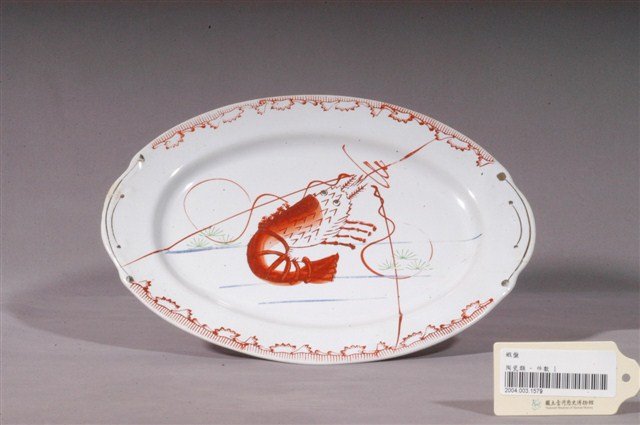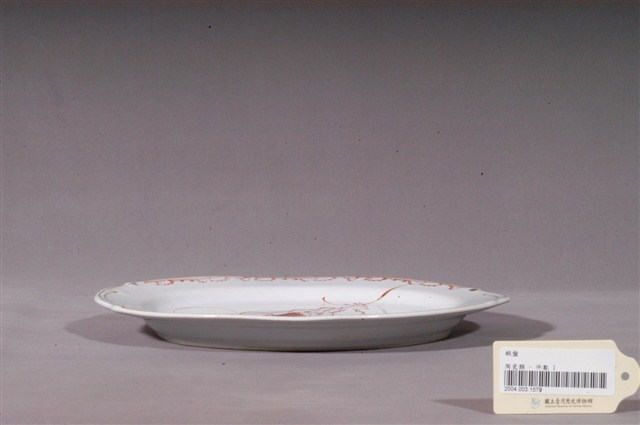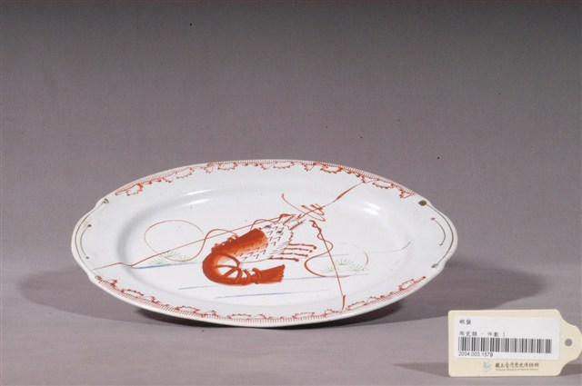 2004.003.1579 印繪紅蝦折沿淺橢圓盤