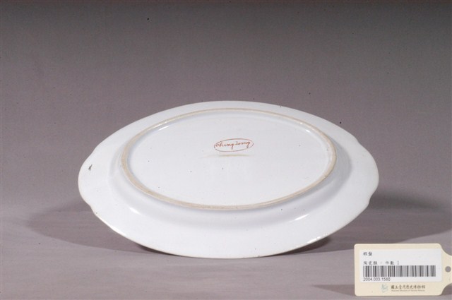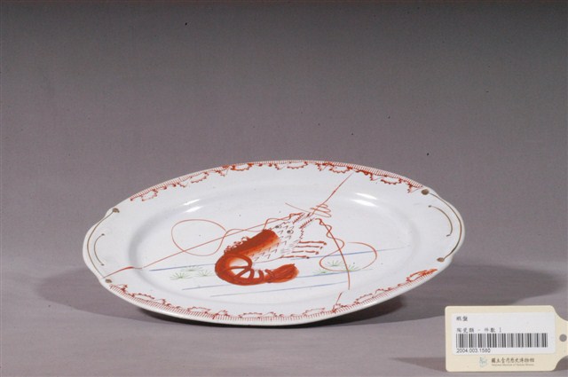 2004.003.1580 印繪紅蝦折沿淺橢圓盤