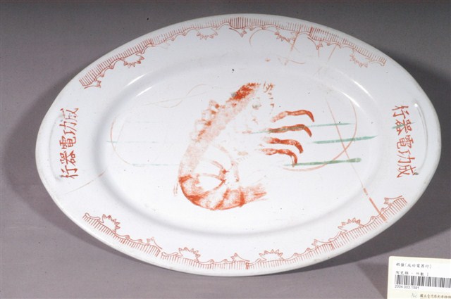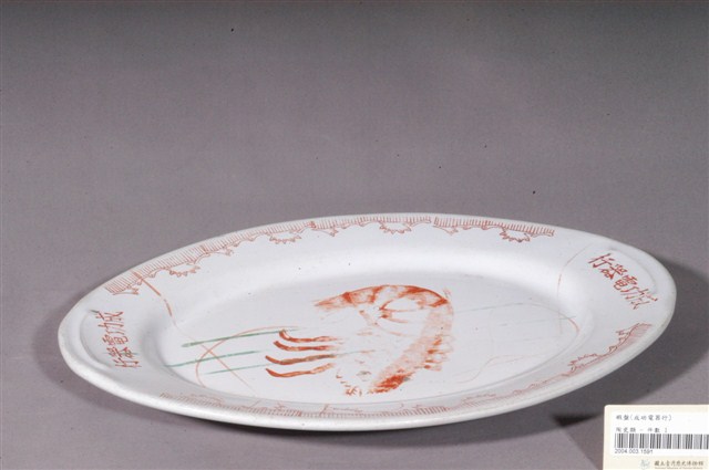 2004.003.1591 印繪紅蝦折沿淺橢圓盤