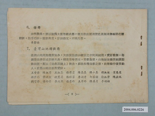 2004.006.0226 王雪華舞蹈研究社發表會節目表