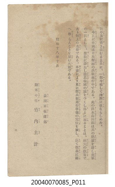 2004.007.0085 《台灣徵兵入營的簡介》