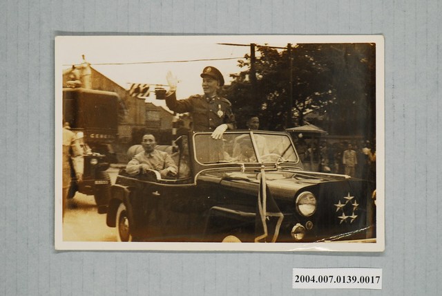 2004.007.0139.0017 雙十國慶閱兵大典蔣總統乘車揮手致意