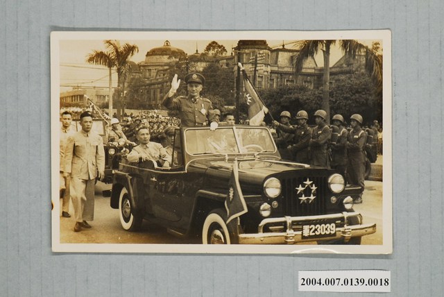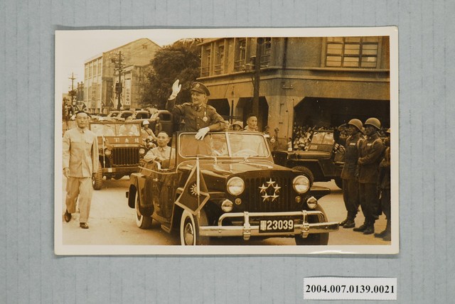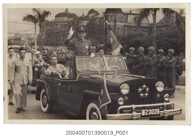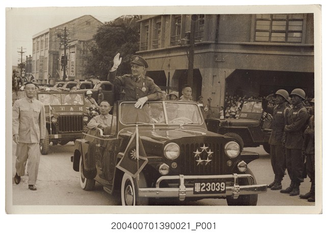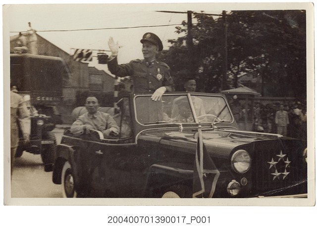 2004.007.0139.0021 雙十國慶閱兵大典蔣總統乘車揮手致意
