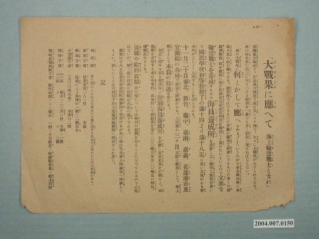 2004.007.0150 昭和年間海上輸送戰士募集單