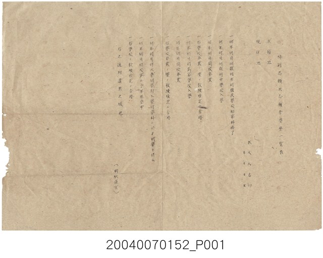 2004.007.0152 昭和年間特別志願兵志願者學歷一覽表