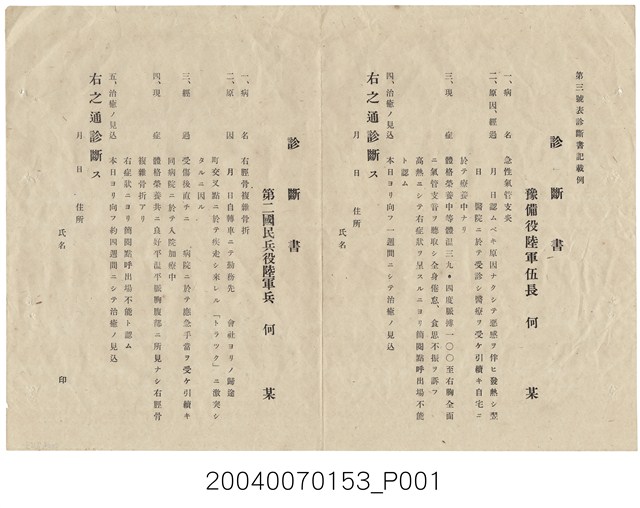 2004.007.0153 第三號表診斷書記載例