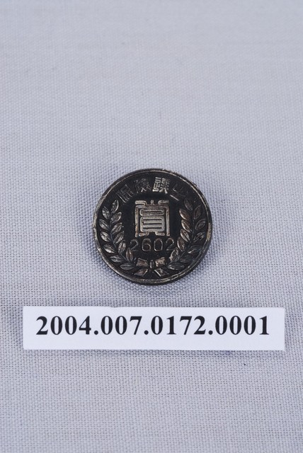 本物件是臺灣生命徵兵保險協會勳章1枚。此徽章外觀呈圓形,正面底色為黑色,表面刻印銀白色的文字「保險選士」、「賞」、「2602」及2束交叉的枝葉圖樣;背面附有1個別針,底色為黑色,表面刻印黑色的文字「特別賞」、「台湾總督府」、「台湾生命徵兵保險協会」。