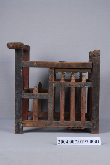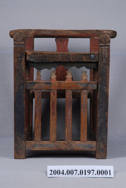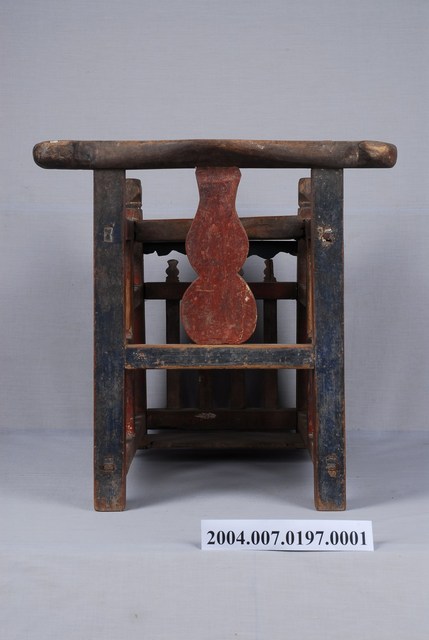 本文物為嬰兒椅之主體,由木材製作而成,使用許多木頭拼接,加以穩固,在嬰兒座位的前方設有長條木頭,可防止小孩摔落。在椅背與外緣設有葫蘆形狀的裝飾,因為葫蘆與「福祿」有相同諧音,所以有著吉祥的象徵。嬰兒椅表面則有多處的刮痕與污漬。在傳統漢人社會中,哺育嬰孩常被視為婦女之重要工作,在嬰兒車普及之前,婦女往往使用嬰兒揹巾從事育兒及勞動工作,而嬰兒車的出現則方便撫育者無須時時刻刻揹著嬰孩,呈現臺灣育兒文化及相關用品的時代變化。