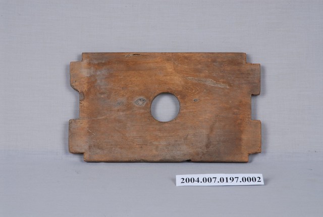 本文物為嬰兒椅之椅板,由木材製作而成,椅板中間挖了一個小圓洞,兩側設有凹凸的形狀,以拼接椅子主體,在椅板表面則有多處的刮痕與污漬。哺育嬰孩為傳統婦女之重要工作,在嬰兒車普及之前往往使用嬰兒揹巾,而嬰兒車的出現則方便撫育者無須時時刻刻揹著嬰孩進行勞動,呈現臺灣育兒文化及相關用品的時代變化。