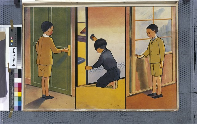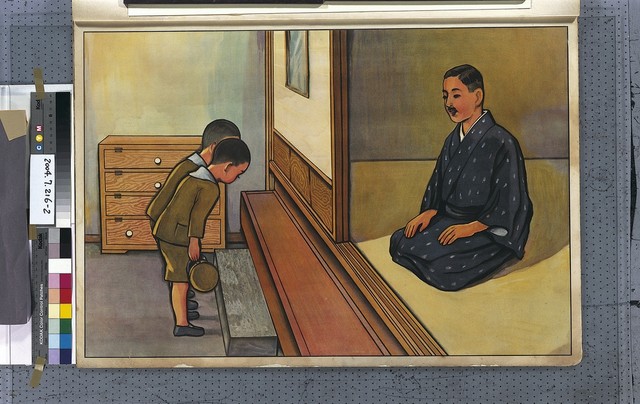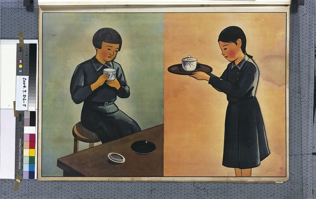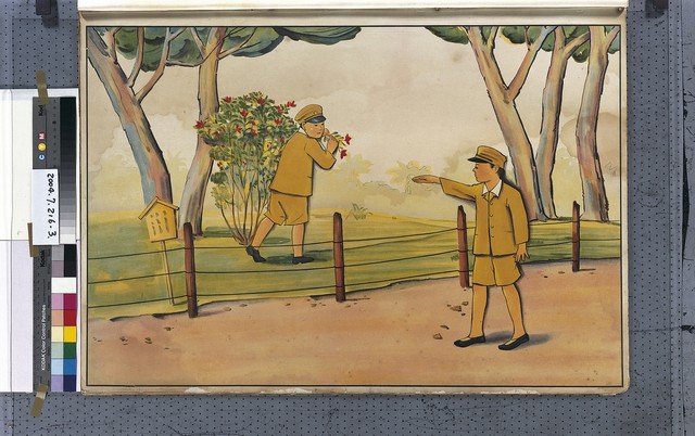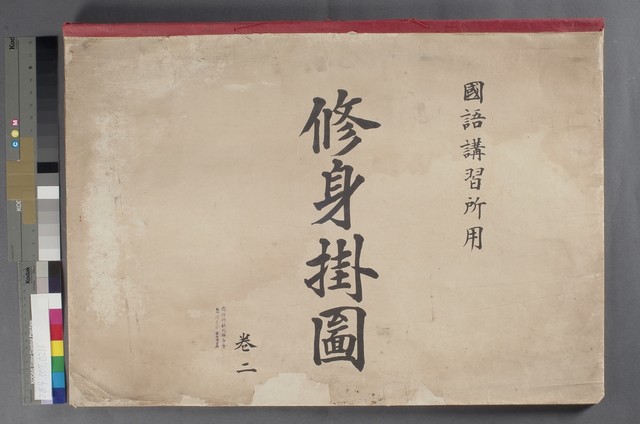 本件為鹿港頂番婆講習所用修身掛圖 ,彩色印刷,線裝,內附10張掛圖,根據封底出版資訊可得知發行年份為昭和17年(1942)。封面印有「臺灣總督府 國語講習所 修身掛圖 卷二」字樣,以及「鹿港街教化聯合會 私立頂番婆國語講習所」印章,內容多描繪生活中之禮節。